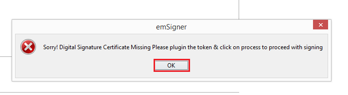 1. I am facing the error “Sorry! Digital Signature Certificate Missing Please plugin the token & click on process to proceed with signing”. What should I do?