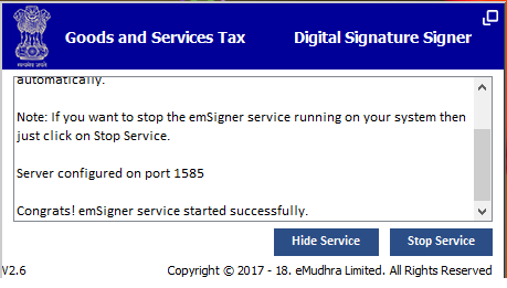 If you are facing issues while registering or signing DSC on the GST Portal, check if the emSigner is started or not.